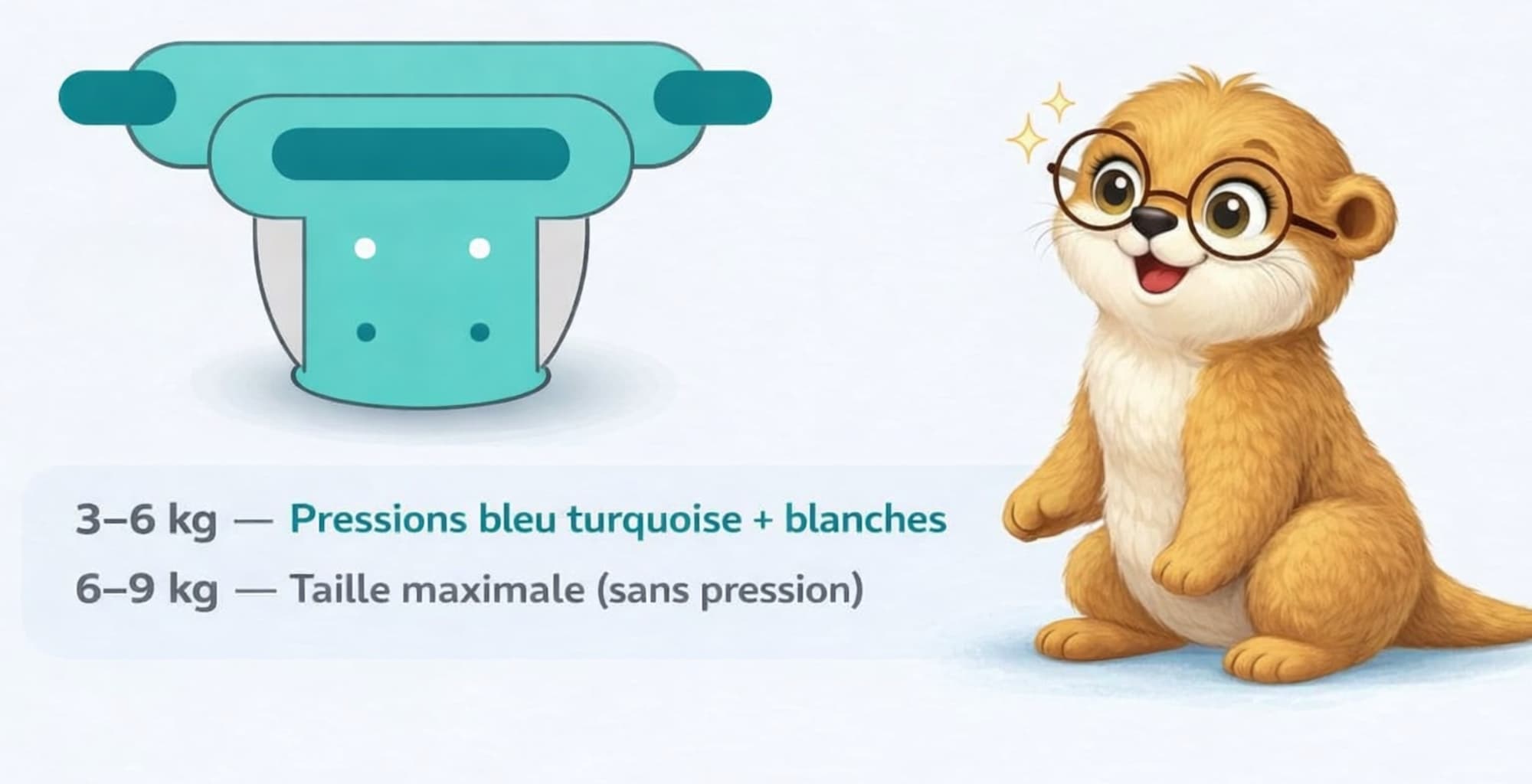 La fermeture à scratch facilite les changes rapides, particulièrement utiles avec un nouveau-né. Les pressions ajustables permettent un réglage morphologique précis dès les tout premiers jours, sans surépaisseur inutile.